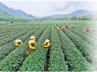 近日,西湖景区的龙井茶园里,西湖龙井43号进入采摘旺季,大批采茶工抓紧采摘明前西湖龙井茶。西湖龙井茶历来以清明前采摘的头茶为贵,近期气温适宜、雨水充沛,茶芽生长旺盛,也正是茶...